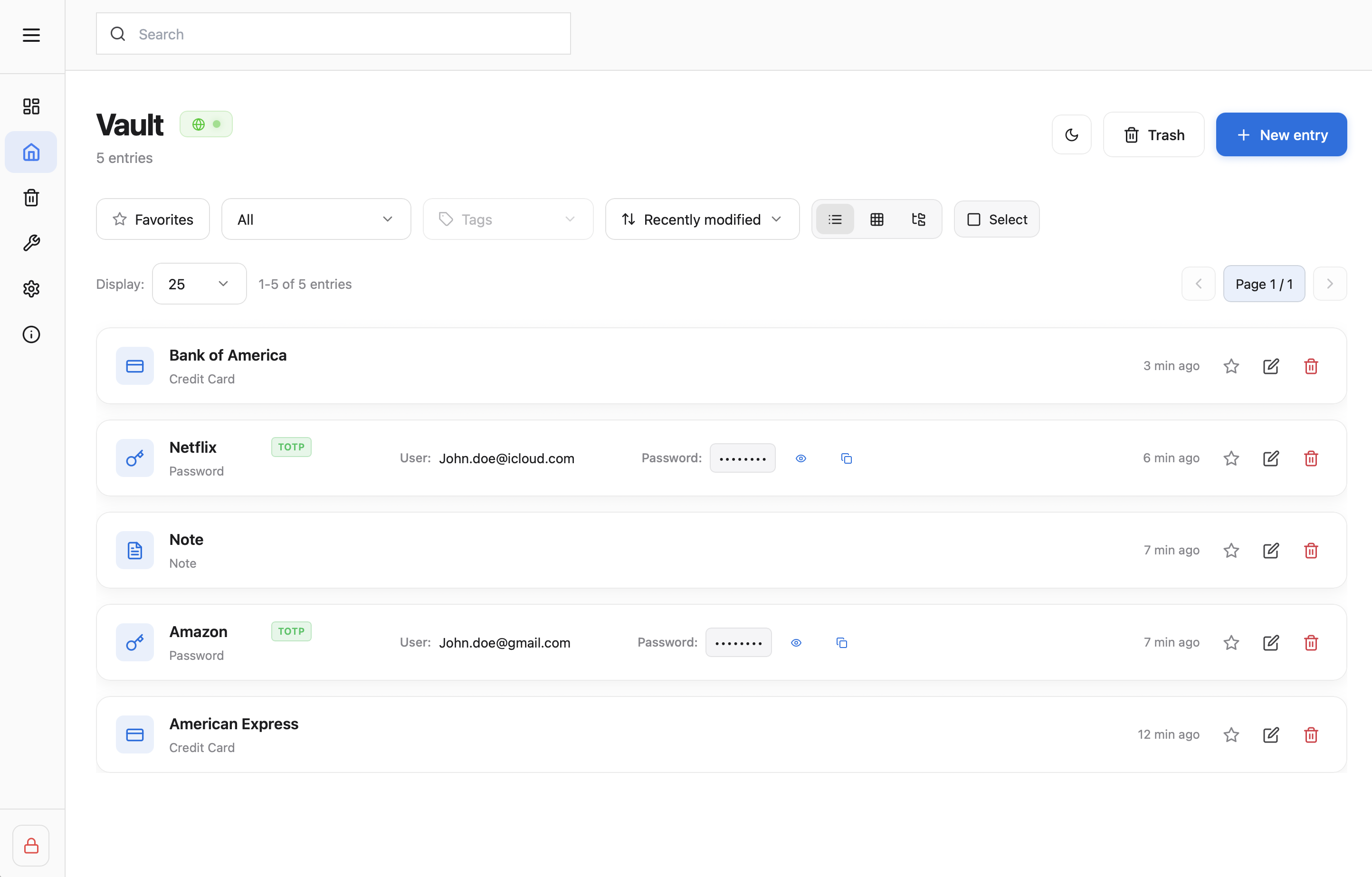 Manage all your secrets: passwords, bank cards, documents, SSH/PGP keys, tokens, passkeys, crypto wallets, identity documents, and more.
